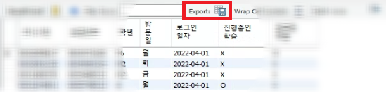 4. 쿼리 결과가 나오면 Export 버튼을 클릭해서 csv 파일로 저장한다.