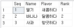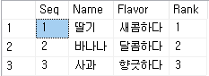 | 1 | 딸기 | 새콤하다 | 1 |