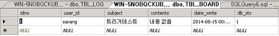 VALUES ('sarang', '트리거테스트', '내용 없음', GETDATE(), '1')