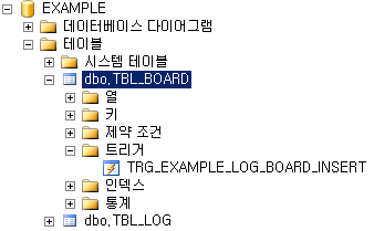 CREATE TRIGGER [dbo].[TRG_EXAMPLE_LOG_BOARD_INSERT] on [dbo].[TBL_BOARD] -- 1. TRG_EXAMPLE_LOG_BOARD_INSERT 란 트리거를 만듭니다. (이름은 마음대로 정할 수 있습니다.)