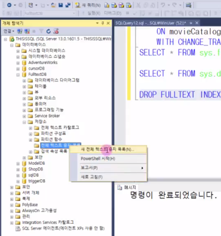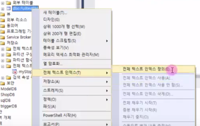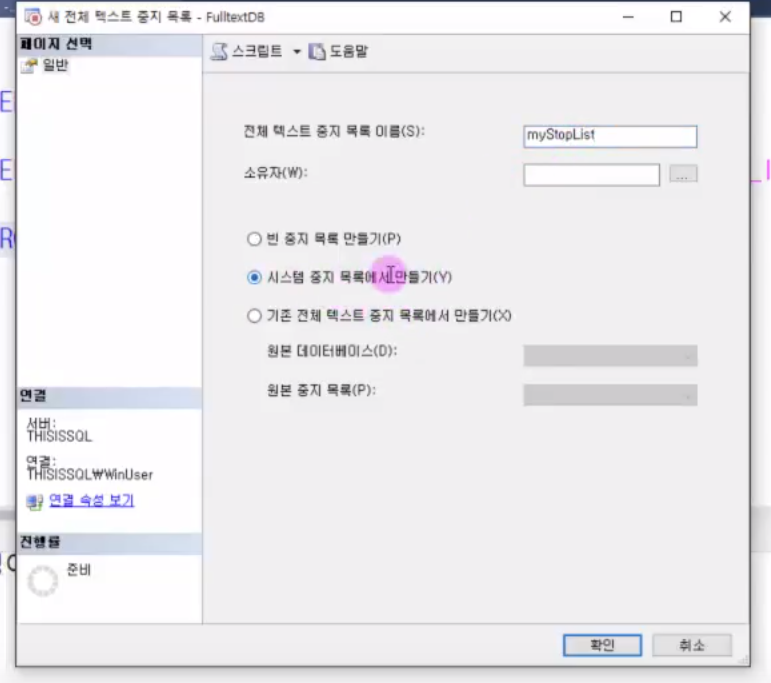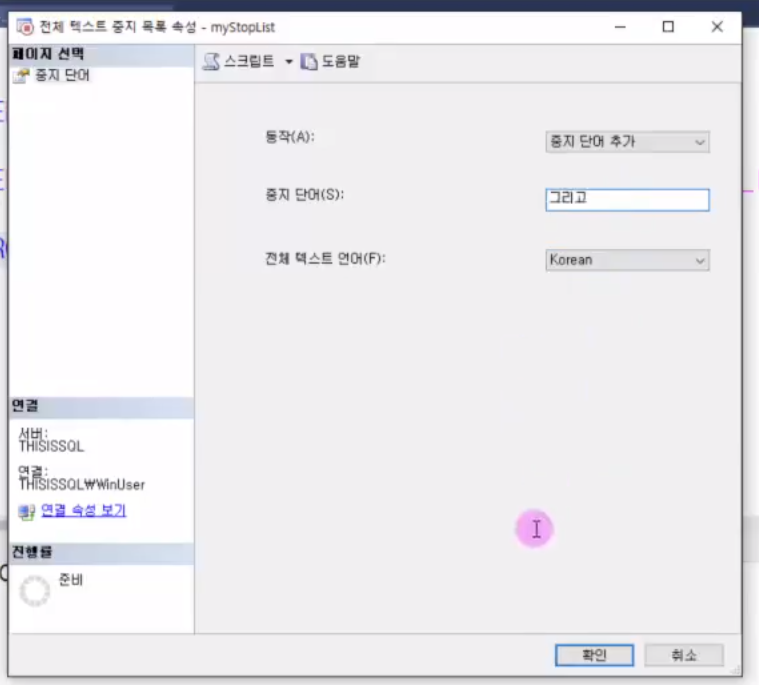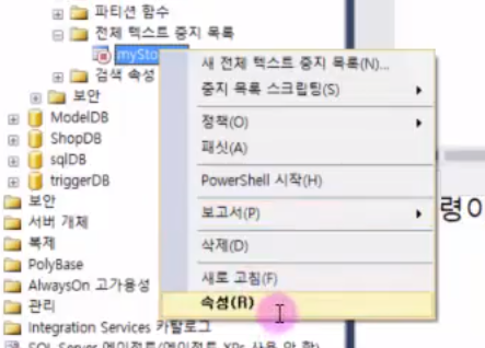 전체 텍스트 -> 오른쪽 클릭 -> 새 전체 텍스트 중지 목록