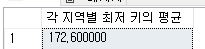 SELECT AVG(minHeight*1.0) AS [각 지역별 최저 키의 평균] FROM CTE_MINAVG;