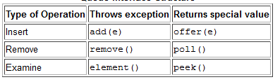 - element도 remove와 마찬가지로 비었을 경우 NosuchElementException이 발생한다. 하지만, peek은 null을 반환한다.