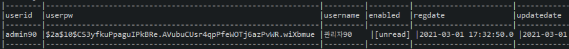 MemberVO vo = mapper.read("admin90");
