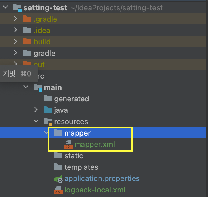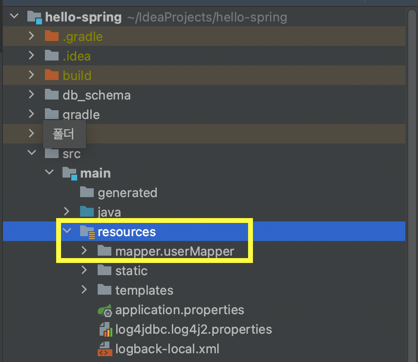 그리고 resources 폴더 하위에 sql을 저장할 mapper 폴더를 만든다.