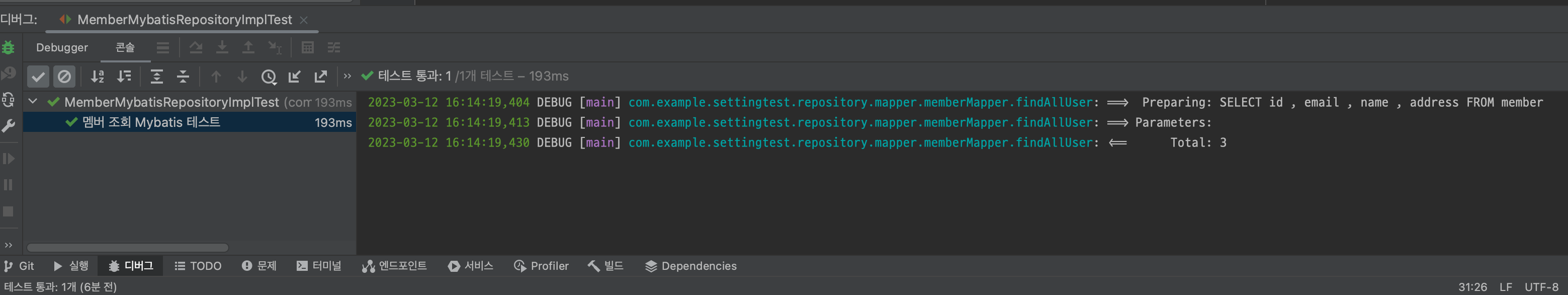 - 테스트용 member 조회 관련 mapper.xml 위치 및 파일을 수정한다.