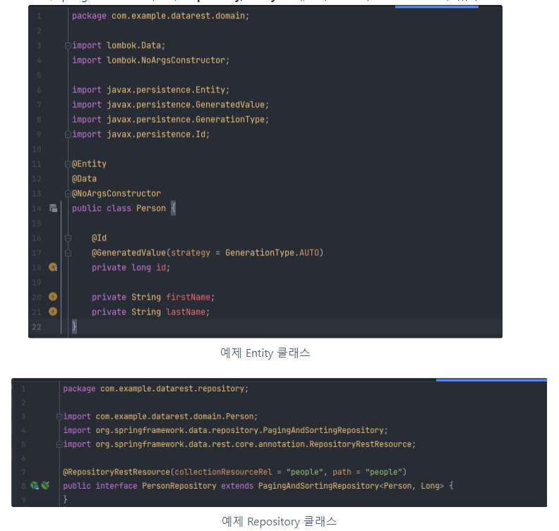 - 반면, Spring Data REST 의 경우 Repository, Entity 만 개발하면 API의 CRUD를 만들 수 있다.