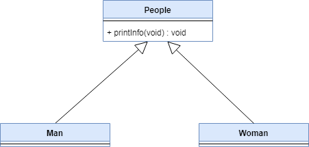 두 클래스 Man과 Woman은 People이라는 클래스를 상속받았으므로 printInfo 호출시 People의 printInfo를 호출할 수 있다는 것, 뭐 놀랍지 않군요.