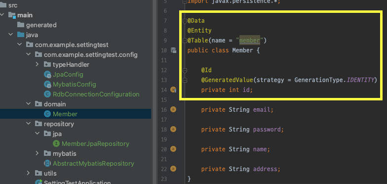- @EnableJpaRepositories(basePackages = "com.example.settingtest.repository.jpa" 에는 위에 만든 패키지의 풀네임을 입력한다.