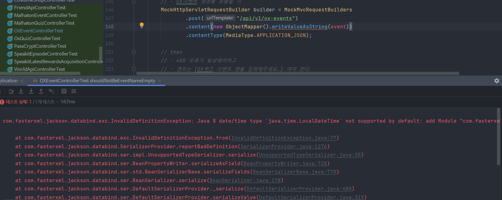 - ObjectMapper()함수에 JavaTimeModule를 추가해서 아래와 같이 해결하였다.