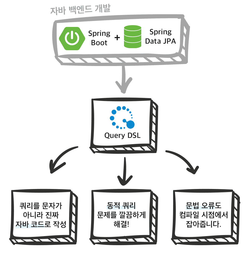Querydsl 설정 아래 내용은 https://github.com/beaver84/setting-test 에서 실제 소스를 확인할 수 있습니다. JPA 설정에 이어서 편리한 기능을 제공하는 Querydsl 설정을 추가한다. 우선, build.gradle 에 라이브러리를 추가 후, gradle을 새로고침을 한다. //Querydsl 버전 관련 buildscript { ext { queryDslVersion = "5.0.0" } } plugins { ... //Querydsl 관련 추가 id 'com.ewerk.gradle.plugins.querydsl' version '1.0.10' ... } dependencies { ... //Querydsl 관련 실제 lib 추가 implementation "com..